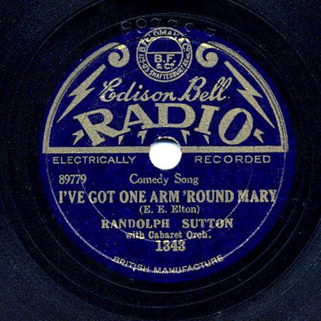 Bristol-born Randolph Sutton was one of the last of the latter-day lions comiques of the Music Hall — the “swells” who dressed to the nines and sang of champagne and the high life. For years, Sutton played in pantomime as both Principal Boy and Dame. His most famous song was On Mother Kelly’s Doorstep. Sutton recorded two Fred Godfrey songs (both written under Godfrey’s pseudonym “Edward E. Elton”): Oh Maggie! What Have You Been Up To? (Edison Bell Radio 1253, 1929) and I’ve Got One Arm Round Mary (And The Other Arm Round Her Ma) (Edison Bell Radio 1343, 1930). On stage, he performed Godfrey’s They All Did The Goose-Step Home (1915); I’ve Got One Arm Round Mary (1930); and Our Claras Clicked Again (1930). |