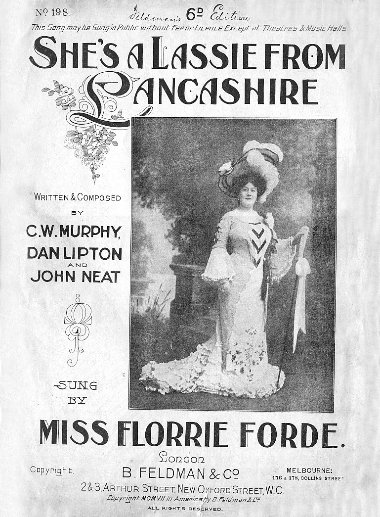 Florrie Forde’s immortal She’s A Lassie From Lancashire (1907), which Fred Godfrey claimed he wrote. Godfrey and Neat collaborated