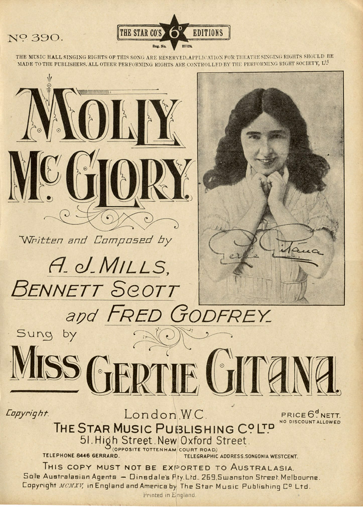 “At the Empire, Newcastle, last week Gertie Gitana tried her new number — The Stage, 7 October 1915